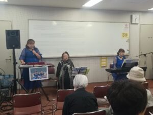 2025年10月11日 「ひこうき雲うたごえサロン木更津」 (木更津市総合福祉会館) 2025/10/11 最終更新日時 : 2025/10/17 はるかぜ 本日開催のひこうき雲うたごえサロンは、ユニット「Spoon」のデビュー戦となりました。 フォークソングを歌うスプーン、お楽しみいただけたでしょうか? 引き続いて「ブランソワ」による安定のリードで盛り上がっていただけました。 お越しいただき大きな声で歌ってくださった皆様、ありがとうございました。 参加者:15名