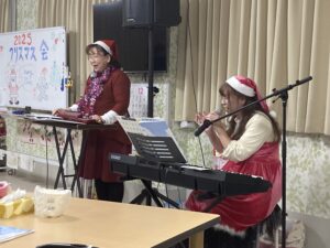 2025年12月24日、ご長寿くらぶ青葉の森にクリスマスパーティーへご招待いただき、フィオーレが演奏をさせていただきました。