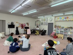 また、演奏の合間には、子どもたちとのやり取りやふれあいの時間もあり、笑い声の絶えない和やかな空間となりました。職員の皆様にも温かく見守っていただき、安心して楽しい時間を共有することができたことに、心より感謝申し上げます。