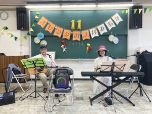 プログラムは、プチデリスの持ち味であるフォークソングを中心に構成し、懐かしさを感じる楽曲の数々を、参加者の皆さんと一緒に口ずさみながら楽しむことができました。自然と手拍子や笑顔が広がり、音楽を通じて一体感のあるひとときを共有することができたのが印象的でした。