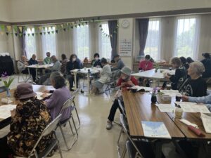 4月24日(火)、木更津市波岡公民館にて開催された「オレンジカフェ」に、プチデリスが招かれ、歌声の会を行いました。
