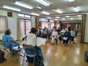 会場では、ぶらんこのリードのもと、季節にちなんだ歌をはじめ、懐かしい歌謡曲やフォークソングの数々を皆さんと一緒に楽しみました。曲が流れるたびに、あちこちから自然と歌声が広がり、時には手拍子が起こり、会場全体がひとつになるような温かい空気に包まれていきました。思い出の一曲に目を細める方、隣の方と顔を見合わせながら笑顔で歌う方など、それぞれの形で音楽を楽しんでいただけたのがとても印象的でした。